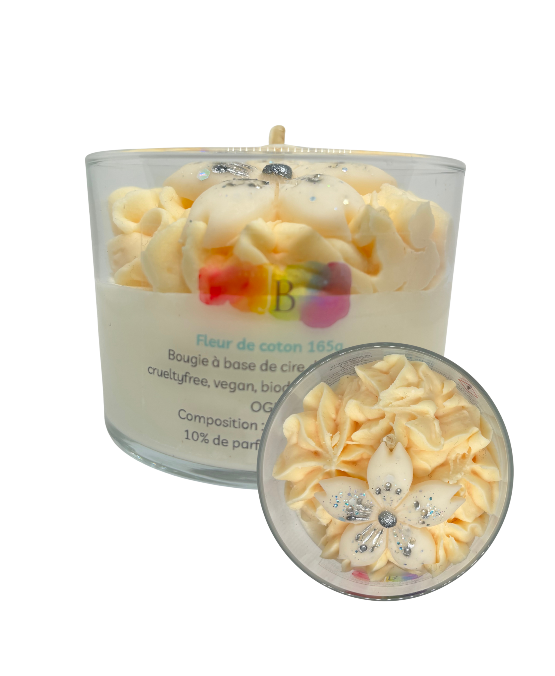 Les notes de tête de Fleur de Coton s’ouvrent sur un accord lacté et un accord irisé. L’accord lacté apporte une sensation de confort immédiat, évoquant la douceur d’un lait chaud, tandis que l’accord irisé offre une texture soyeuse qui rappelle la finesse et la délicatesse du coton, introduisant le parfum avec une propreté raffinée.